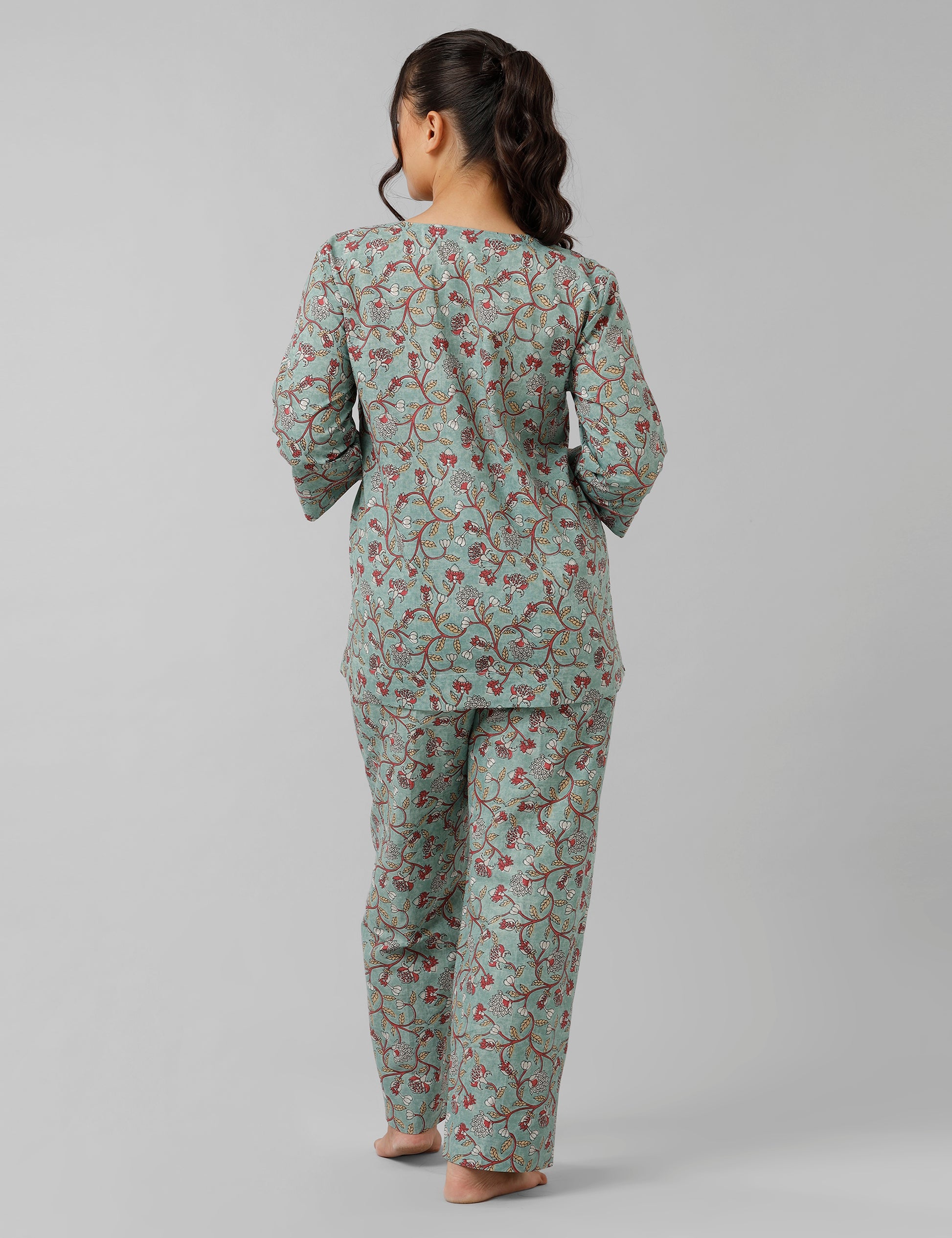 Fabric - 100% Cotton. Soft, 40's cotton fabric with a burgandy and pale green floral print.