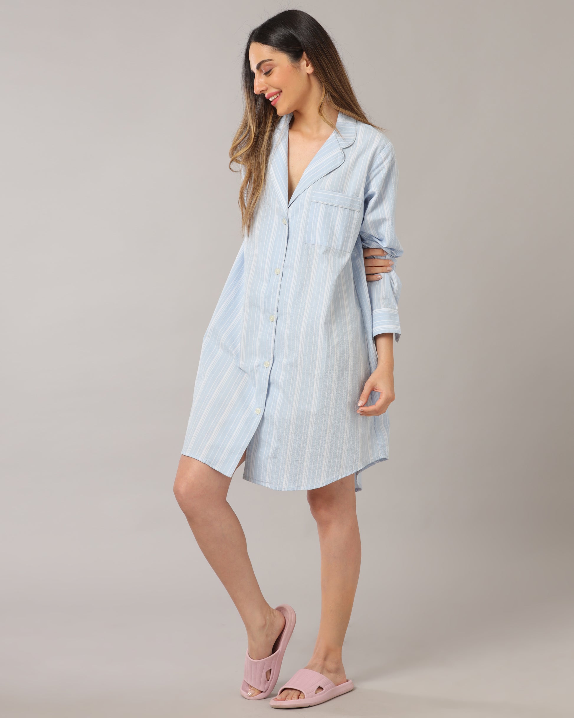 Made from soft cottons and constructed with a hi-low hem, this sleep shirt provides maximum style and comfort. This particular design features pastel mixed stripes.